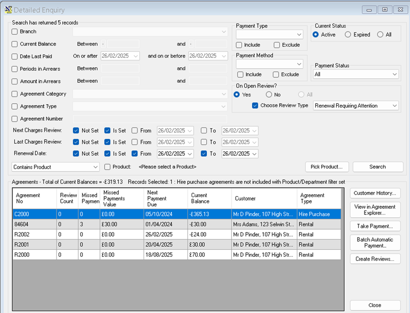 Agreements Detailed Enquiry