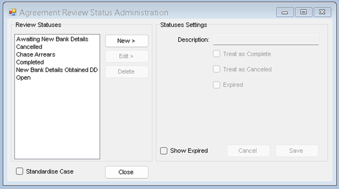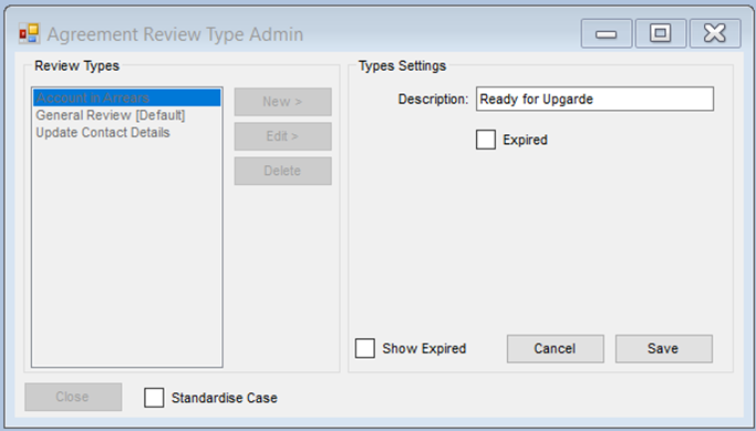 Note: The Standardise Case checkbox will tidy your text entry automatically on save.