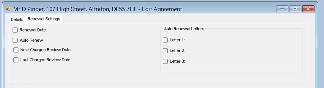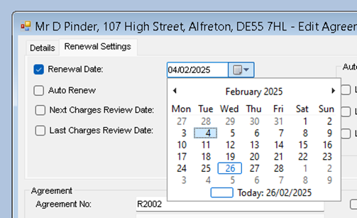 Note: When auto renew is set, the system will automatically move the renewal date on by the selected time period when the agreement reaches its renewal date.