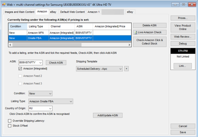 When ready, press Add/Update ASIN, and then Save to list it on Sellerflex.