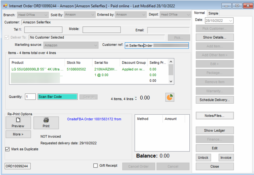 Warning: If the sale is marked as Cancelled in SellerCentral at any point, it will automatically Cancel the sale in NCompass