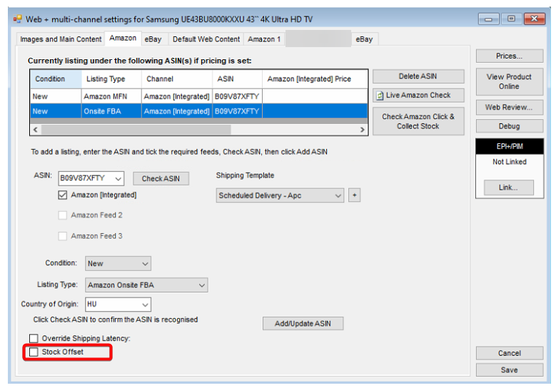 To mitigate this, or to adjust what you want the stock level of an item to appear as in Seller Central, you can add a Stock Offset.